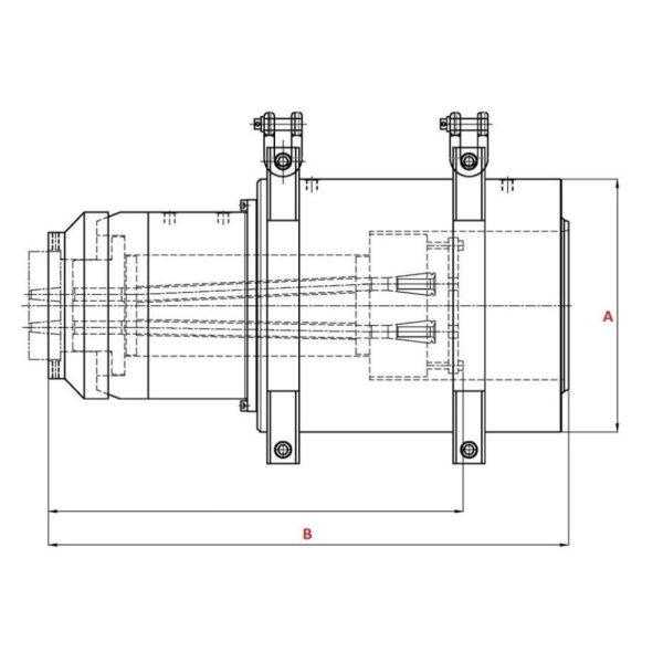 Model Capacity (Ton) Stroke (mm) Effective Area (sq.cm) A Outer Dia (mm) B Closed Height (mm) Gripping Length (mm) Max. Working Pressure (kg/sq.cm) No of Strands 0.5″ (inch) No of Strands 0.6″ (inch)